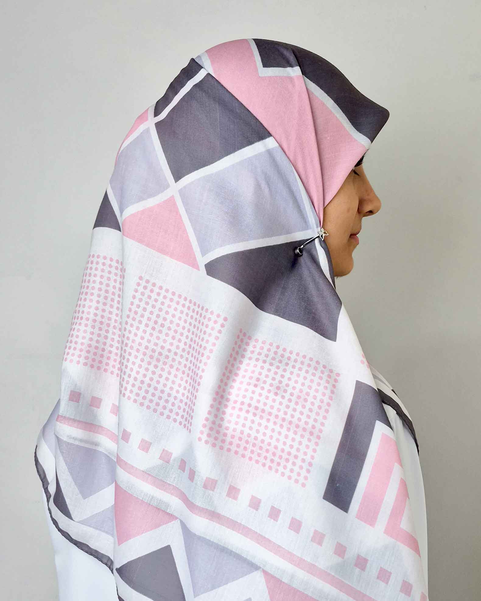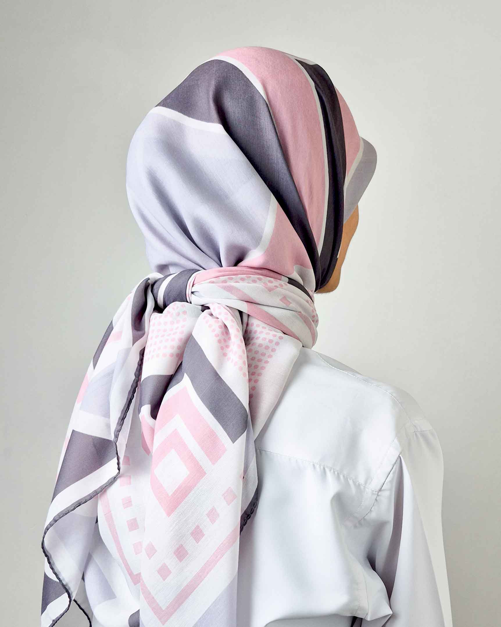روسری نخی گلوریا طرح نگار با ترکیب رنگ صورتی و طوسی، پارچه نرم و سبک و قواره بزرگ ۱۴۰، انتخابی شیک و لطیف برای استایل روزمره و رسمی بانوان است.