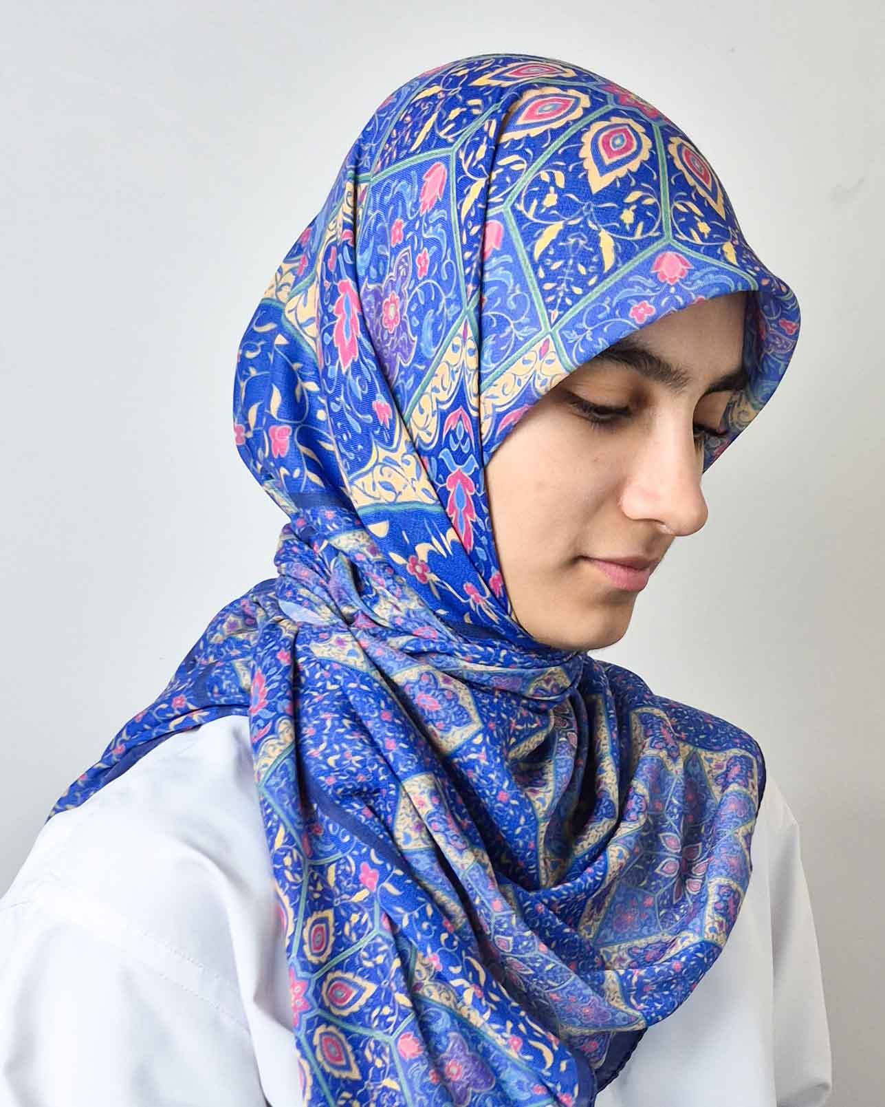 روسری گلستان با طرح اسلیمی خاصش، یادآور وقار و لطافت زنانه‌ست.